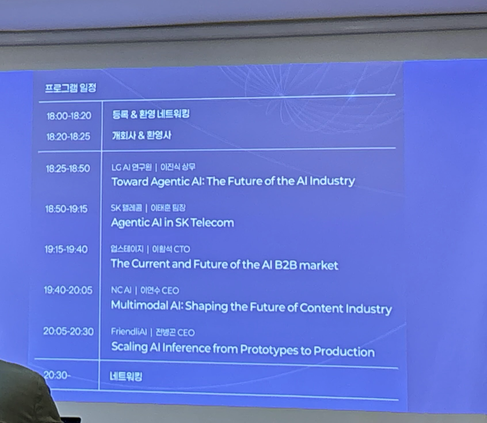 이번 밋업에서 발표를 진행한 기업은 LG AI, SK 텔레콤, 업스테이지, NC AI, FriendlyAI였습니다. FriendlyAI를 제외한 4개 기업은 네이버 클라우드와 함께 과기정통부의 K-AI(국가대표 AI) 프로젝트에 선발된 기업들입니다. 선정 기업 중 네이버 클라우드는 이번 밋업에 참여하지 않았지만, 대신 AI 추론 및 인프라 분야 파트너로서 이들과 협력 중인 FriendlyAI가 행사를 주최하며 자리를 채웠습니다.